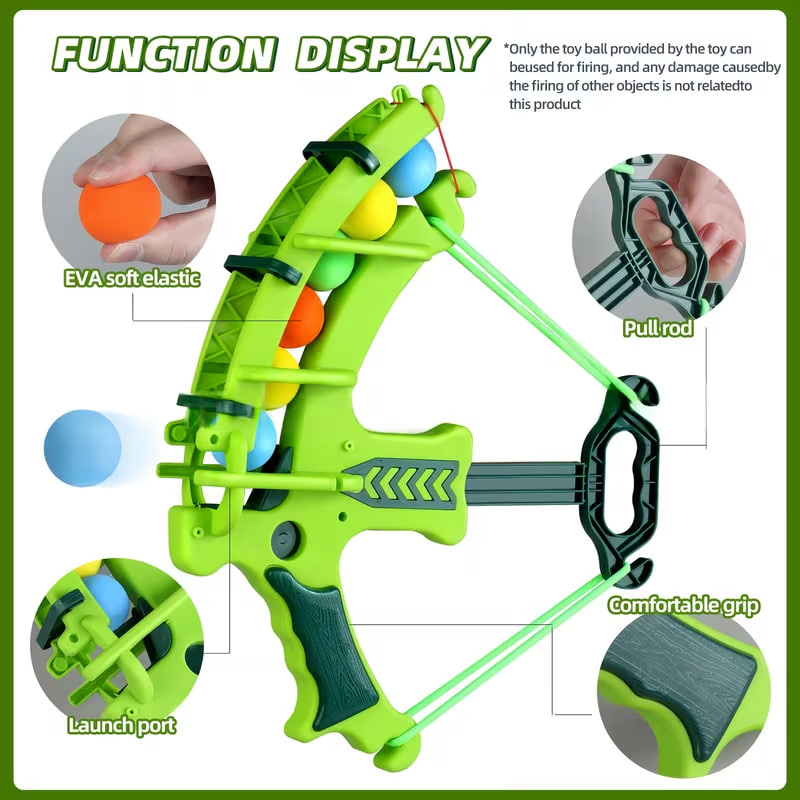 Лук має просту систему перезаряджання, що дозволяє запускати кілька куль поспіль, підтримуючи швидкий темп гри. ПРЕМІАЛЬНИЙ МАТЕРІАЛ: Виготовлений із міцного АБС-пластику та м'яких поролонових куль, що забезпечує довговічність та безпеку навіть при інтенсивному використанні дітьми.