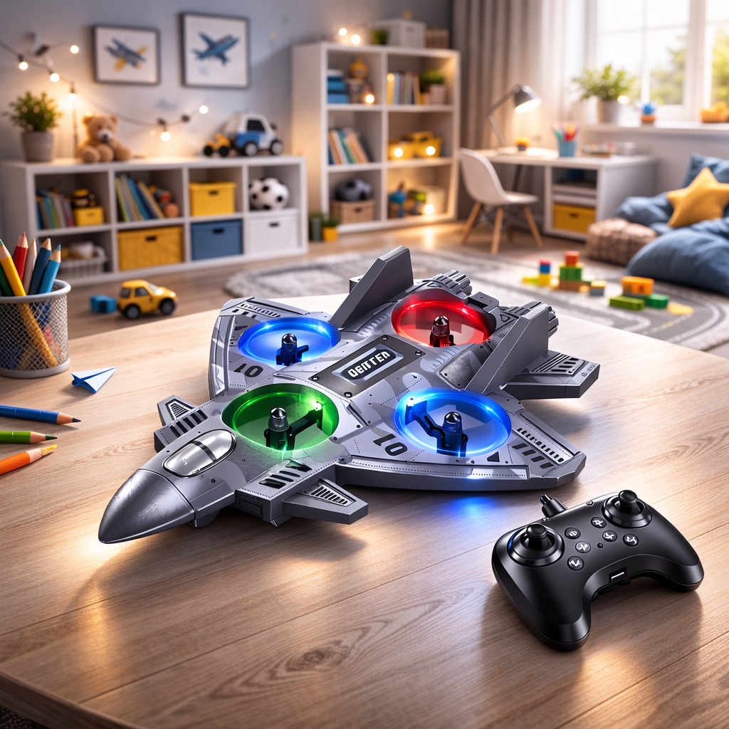 Радіокерований літак зі світловими ефектами – простота управління – ключова особливість набору. Інтуїтивно зрозумілий пульт дозволяє швидко освоїти пілотування, легко набирати висоту та здійснювати акуратні повороти. Літак слухняно веде себе у повітрі, що робить його ідеальним стартом для юних авіаторів. Міцний корпус розширює межі використання: від великих кімнат до парків та ігрових майданчиків.
