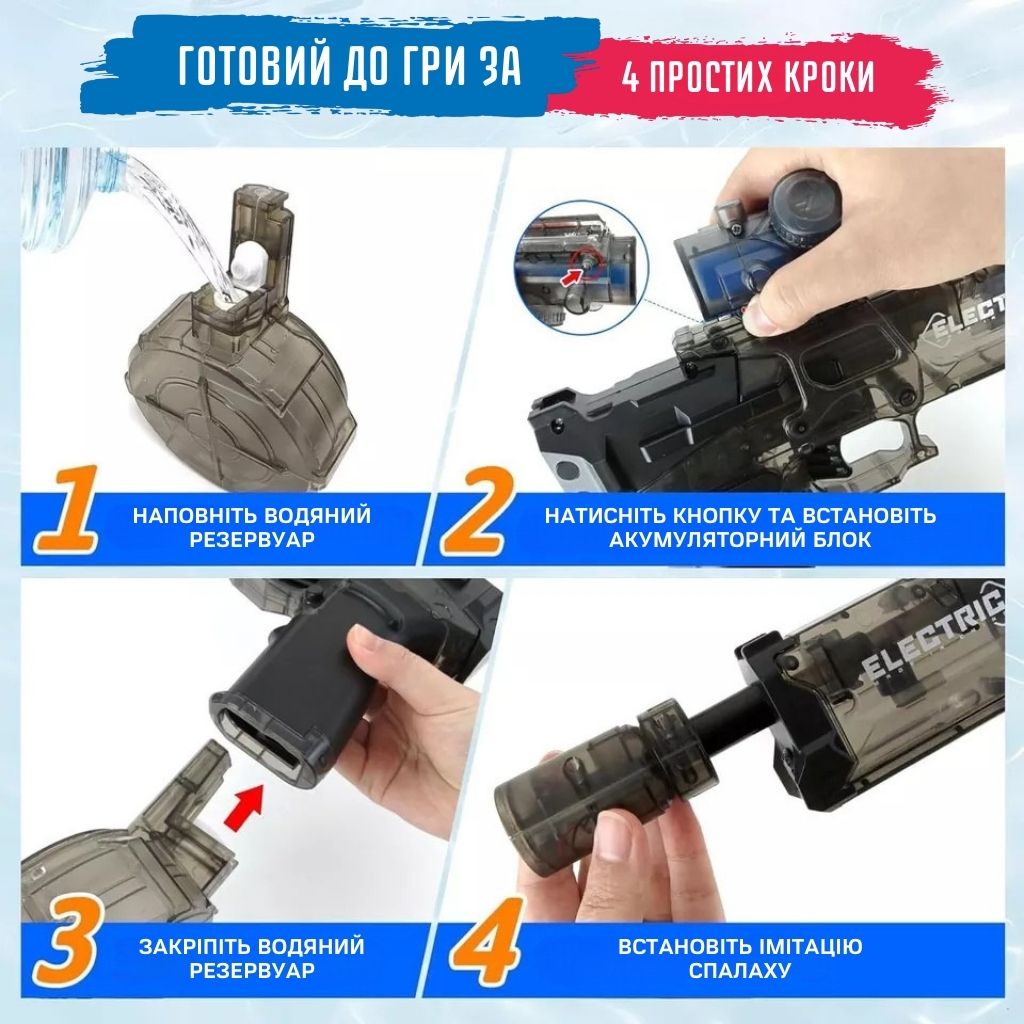 - Комплектація: Електричний водний бластер, інструкція, упаковка