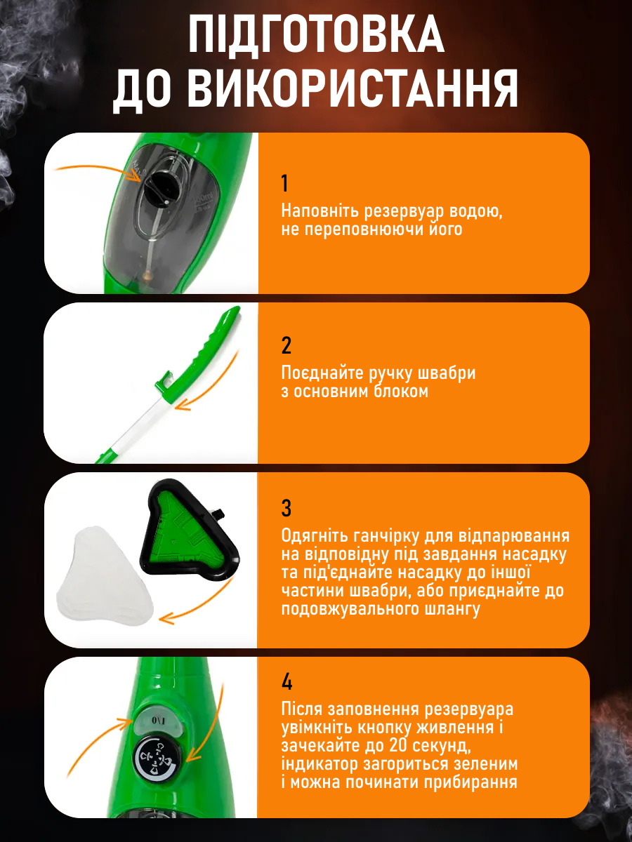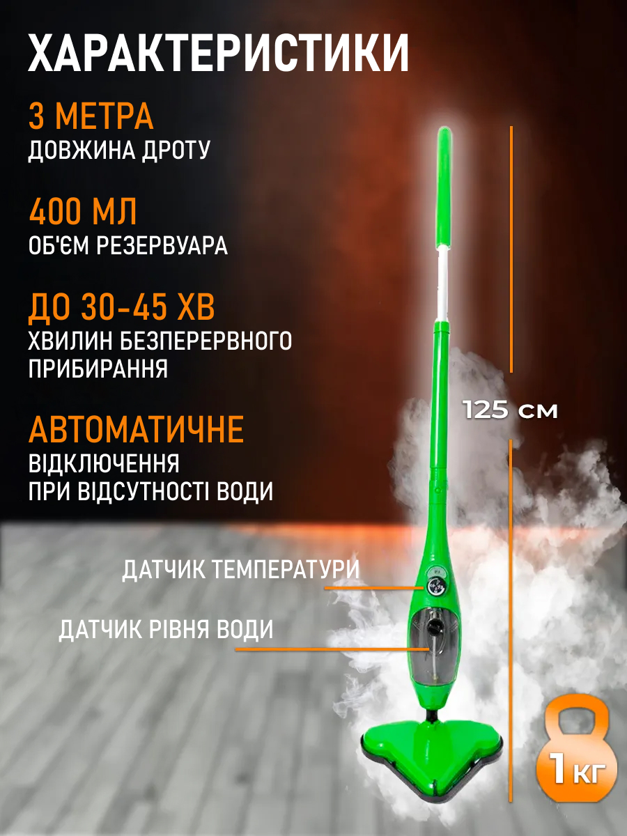 Ця парова швабра стане незамінним помічником у будь-якому домі, забезпечуючи швидке та ефективне прибирання