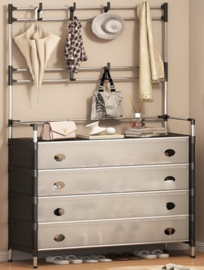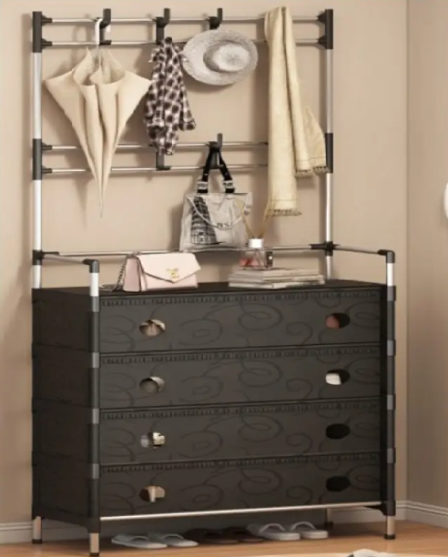 Чорна 4 полиці з вішалкою
