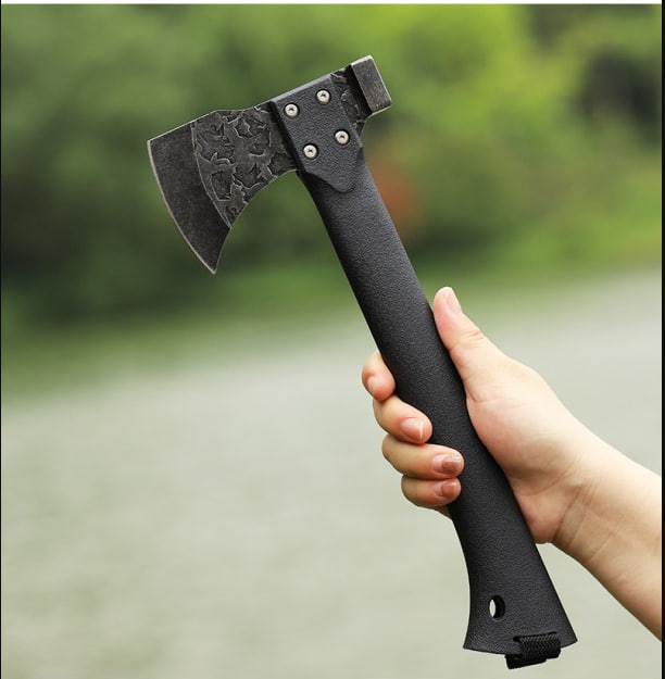Сокира+Ніж+Кресало – це відмінний комплект та додаток до туристичного спорядження. Маючи при собі лише один інструмент – сокиру, ви отримуєте два необхідні в поході предмети – рукоять сокири має внутрішню порожнину, в якій за допомогою надійної нейлонової стрічки з кліпсою утримується невелика пилка. Це зручно для зберігання та транспортування, а також для економії місця. Довга ручка сокири гарантує сильний та якісний удар. Клинок сокири виготовлений методом лиття під тиском із кованої сталі, який охоплює міцну ручку. Скловолокнистий нейлон рукояток, завдяки своїм властивостям, дуже стійкий до зовнішнього впливу, не тріскається та не руйнується. Зворотна частина сокири має плоску поверхню та є молотком.