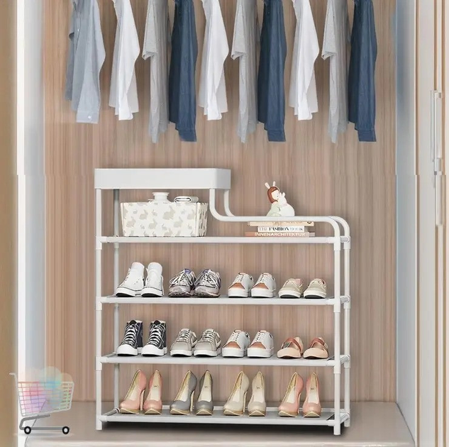 П'ятирівнева полиця для взуття — це ідеальне рішення для організації простору та зберігання вашого взуття. Вона допоможе вам позбутися безладу та зробити ваш передпокій, гардеробну чи інше приміщення більш охайним і функціональним. Завдяки своїм п'яти рівням, полиця дозволяє легко розмістити до 16 пар взуття, що забезпечує зручний доступ та підтримання порядку.