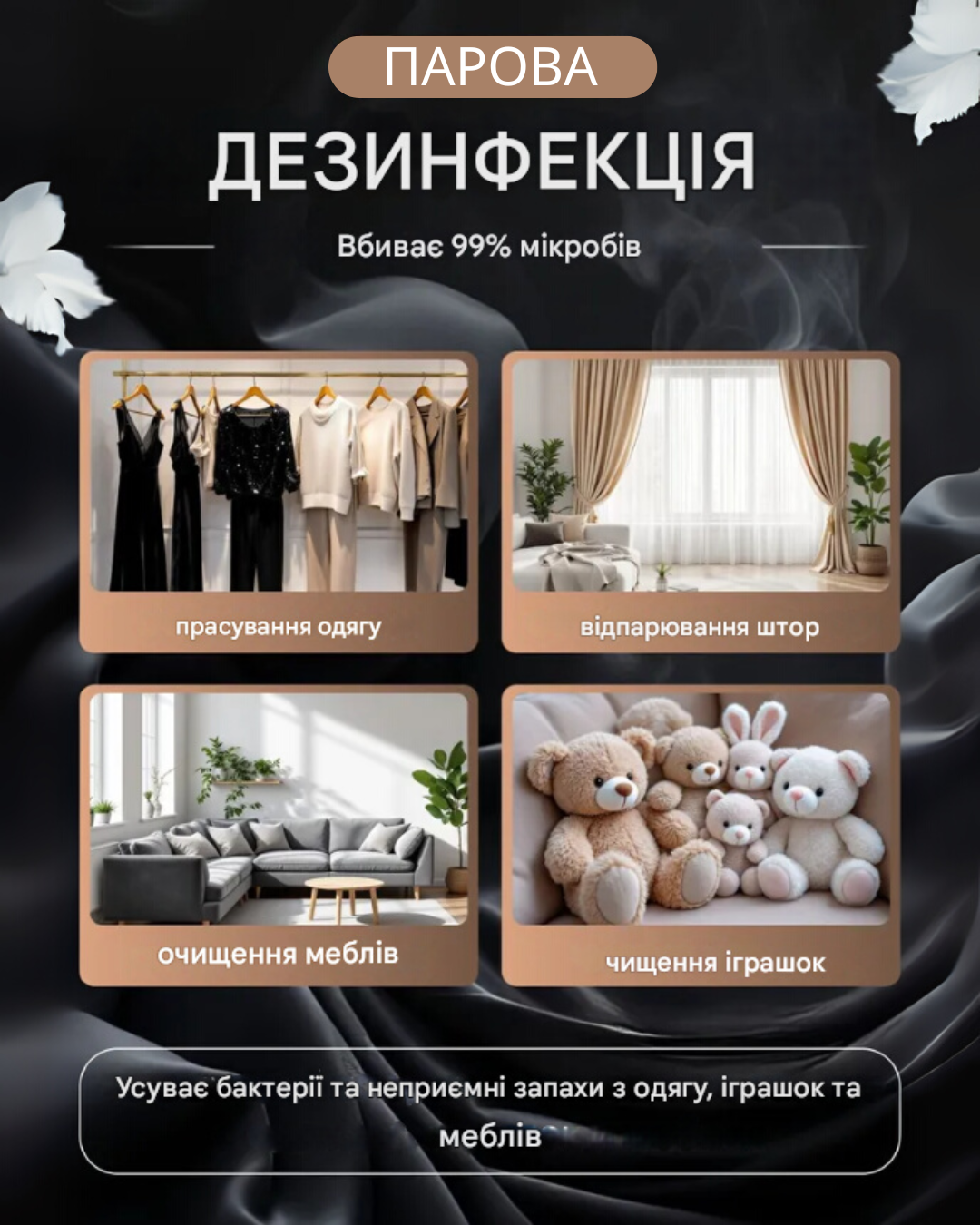 Вертикальне та горизонтальне відпарювання - зручно для штор, піджаків і делікатних тканин